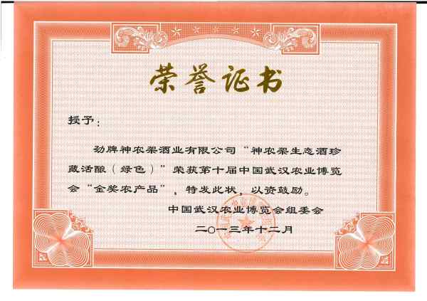 榮獲第十屆中國武漢農業博覽會“金獎農產品”