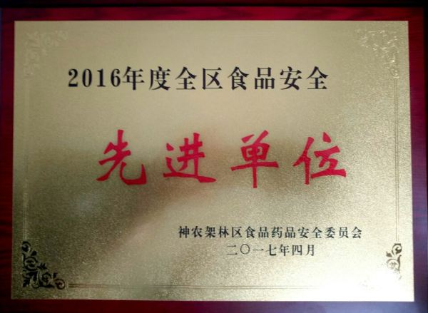 2016年度全區(qū)食品安全“先進單位”。